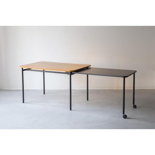 エクステンションテーブル おしゃれ 北欧 オーク ブラック脚 スチール脚 無垢材 木製 木 天然木 作業台 書斎机 デスク キャスター付き