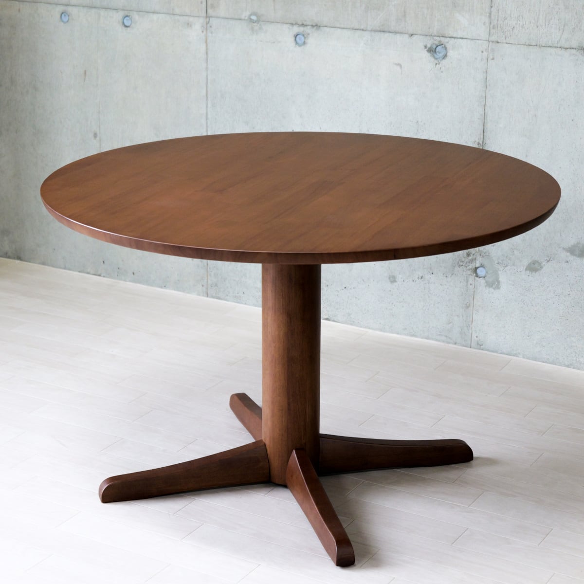 ダイニングテーブル 北欧 円形テーブル おしゃれ 丸テーブル 無垢材 4本脚 ナチュラル 木製 天然木 4人 カフェテーブル 幅110 茶色 ブラウン リビング 食卓テーブル 1本脚 十字脚 中心脚 クロスベース センターレッグ