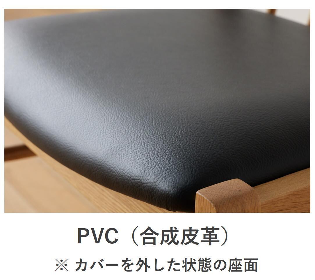 カバーを外した状態でもご使用いただけるよう、座面本体には水や汚れに強いブラックPVCレザーを採用しています。