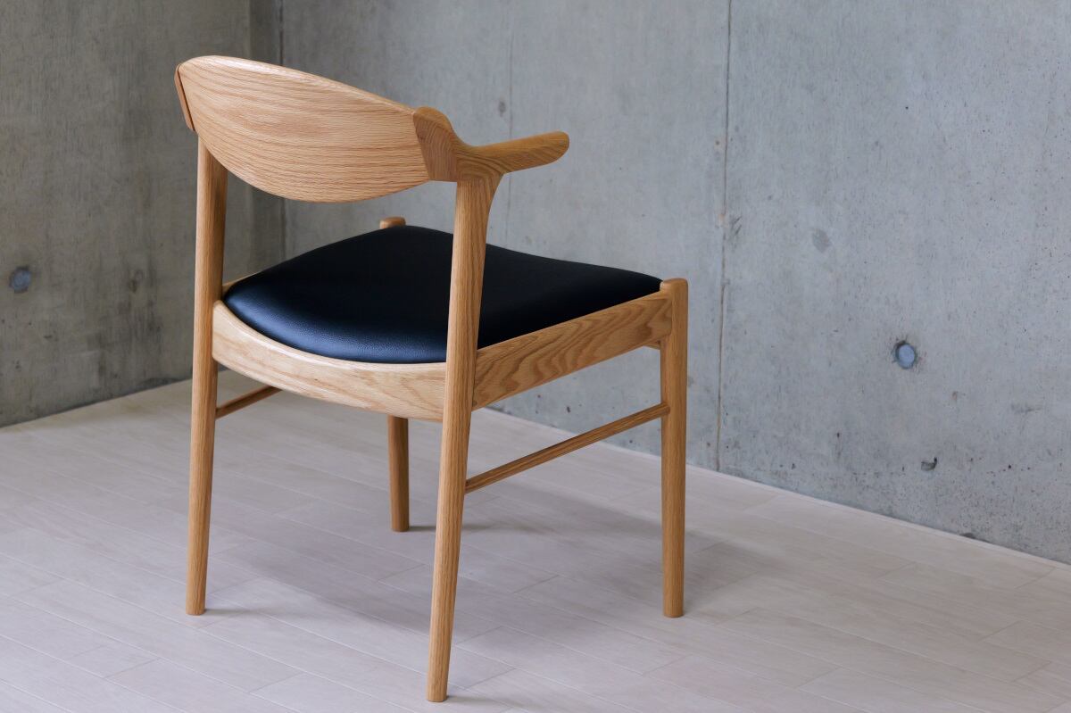 出入りのしやすいハーフアーム形状は、ダイニングはもちろん書斎や作業用チェアとしても活躍します。