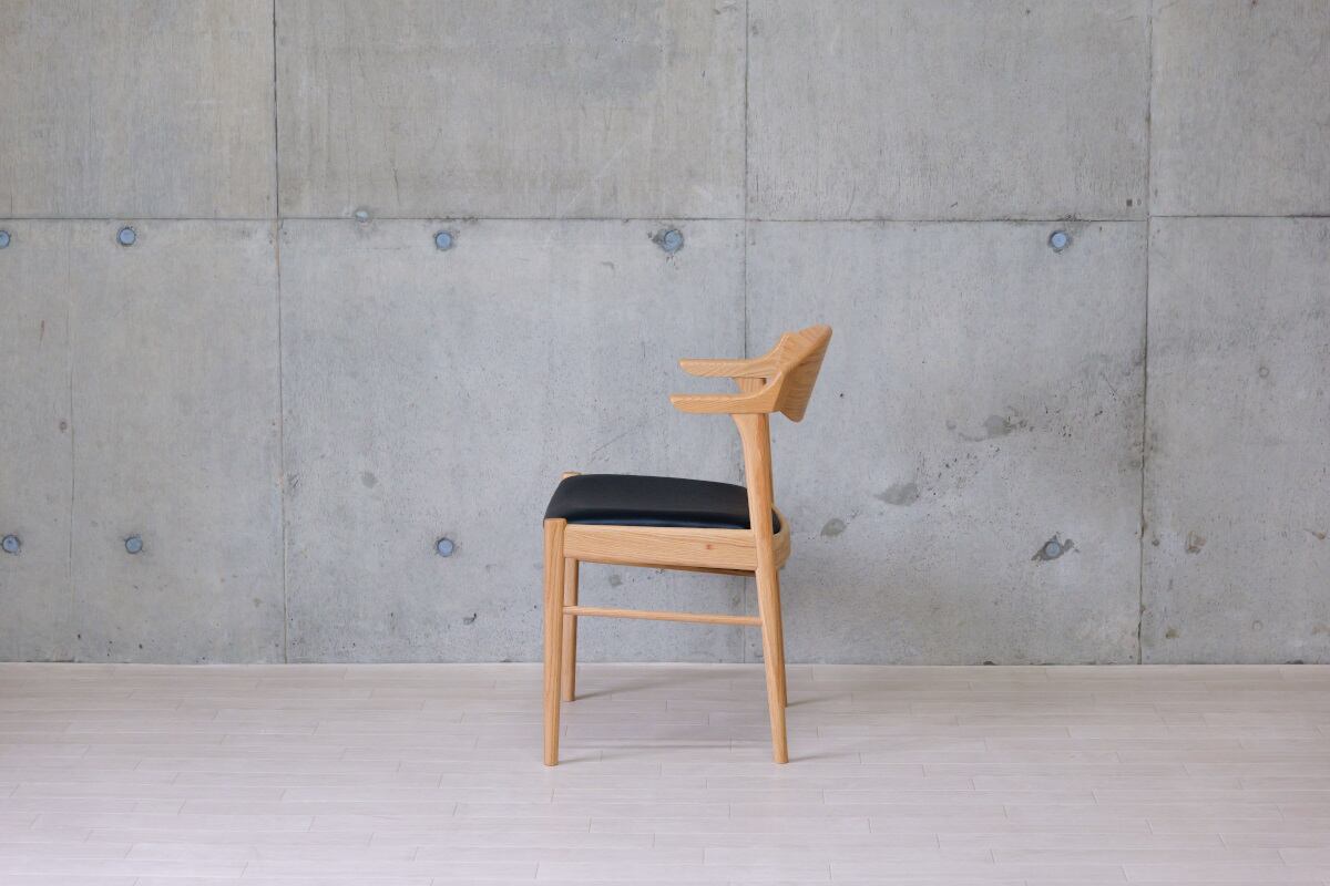 オーク無垢材を使用した、やさしい風合いのハーフアームチェア(セミアームチェア)。
