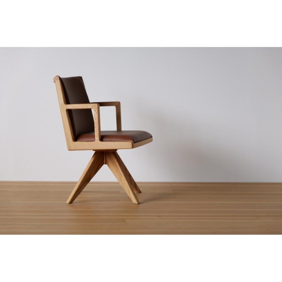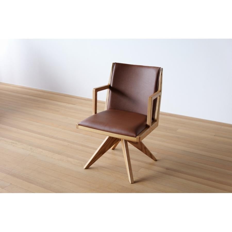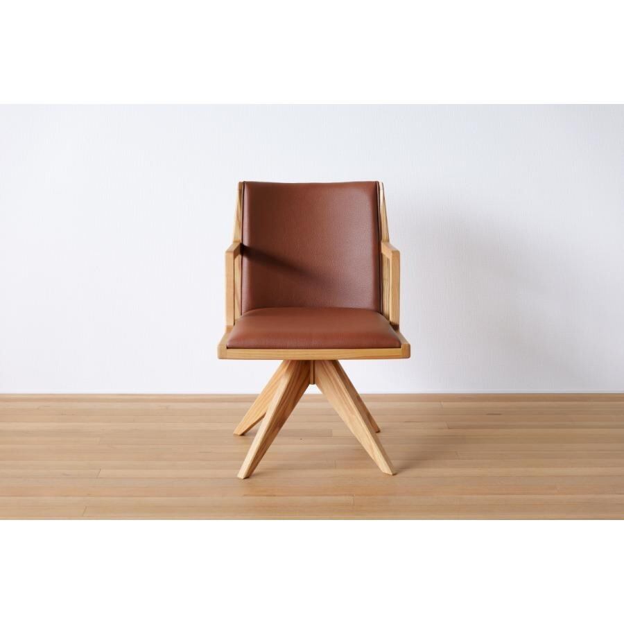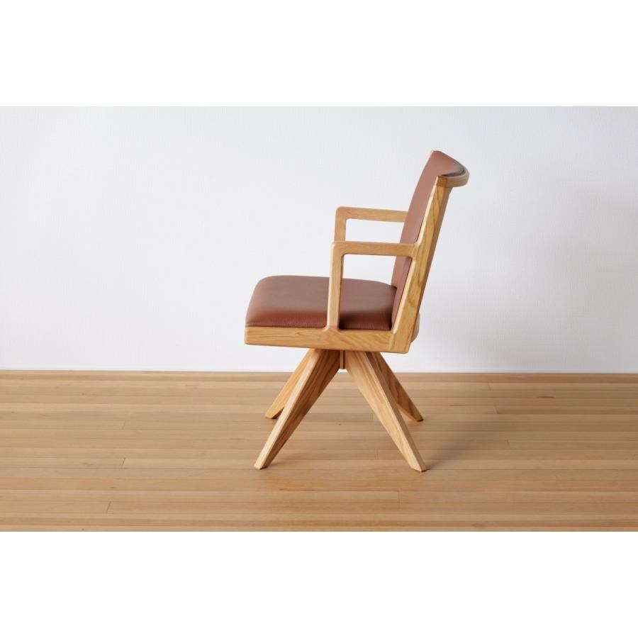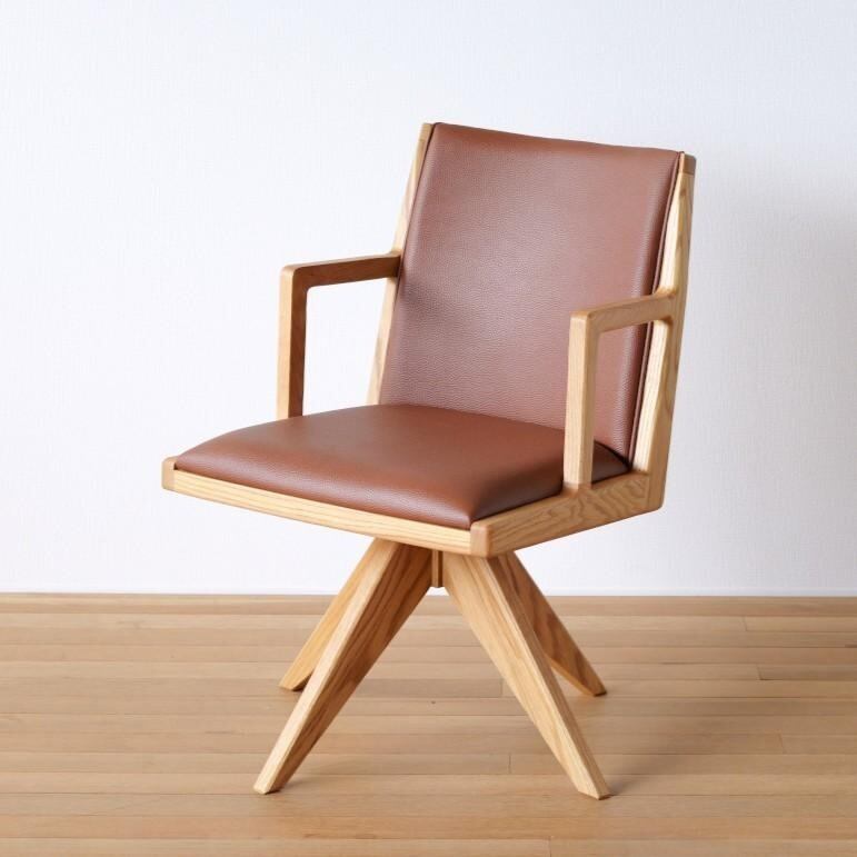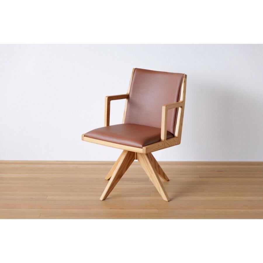 無垢材を贅沢に使用した、上質感漂う回転式ハーフアームチェア。