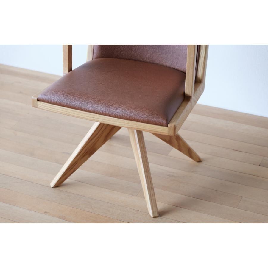 オーク無垢 回転チェア 木製 おしゃれ シンプル オーク ダイニング用 食卓 革 合皮 360度回転 無垢材 天然木 北欧 ナチュラル 木の椅子 いす 回転機能付き
