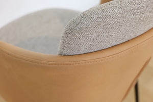 アームからバックにかけて使用しているレザーを模したファブリック生地が高級感を演出します。