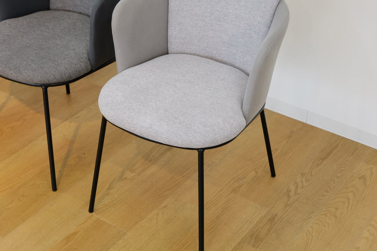 脚部にはシャープな金属脚を使用し、上品でスタイリッシュなチェアに仕上げています。