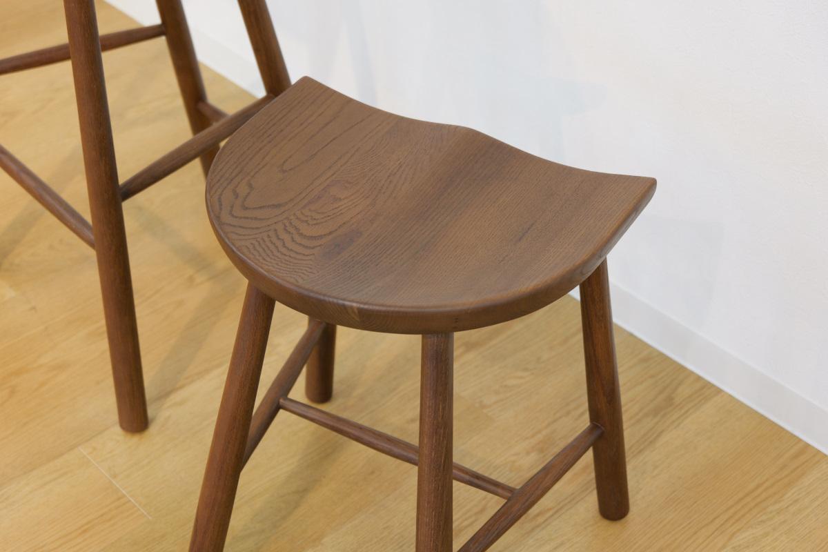 おしりと太ももに沿う座ぐりを深めに施し、長時間でも疲れにくい座り心地を叶えたカウンター用スツールです。