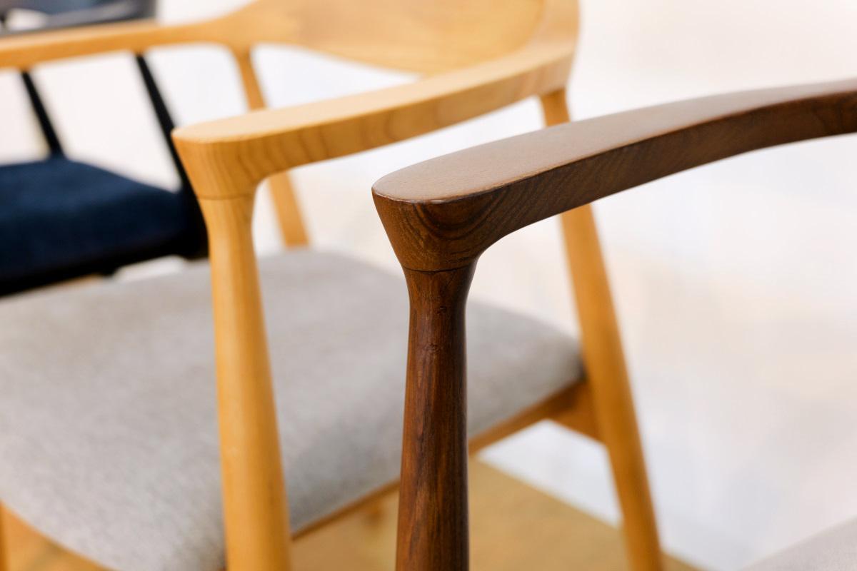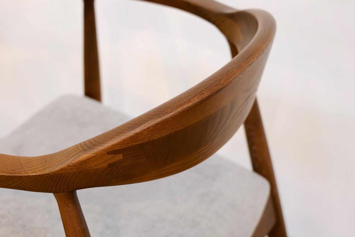 アッシュ無垢材の穏やかな木目と、丸脚のテーパードが生む陰影で、食卓に凛としたやさしさを添える一脚です。