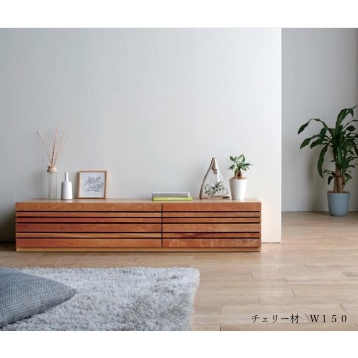 シンプルなデザインだからこそ、無垢材を使った質感が際立つテレビボード。