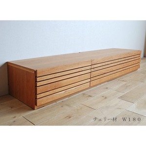 シンプルなデザインだからこそ、無垢材を使った質感が際立つテレビボード。