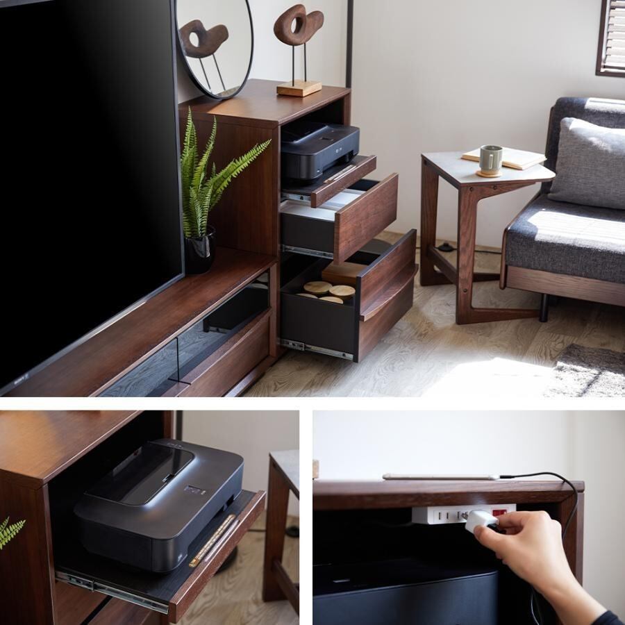 チェスト リビング 収納 リビング収納 キャビネット 完成品 コンパクト コンセント付 プリンター収納 国産 日本製
