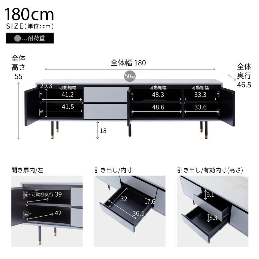 テレビ台 ローボード テレビボード TV台 60インチ 180 180cm 完成品 大型 引き出し 脚高 大理石調