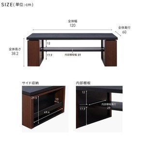 ■サイズ/幅120cm×奥行60cm×高さ38.2cm