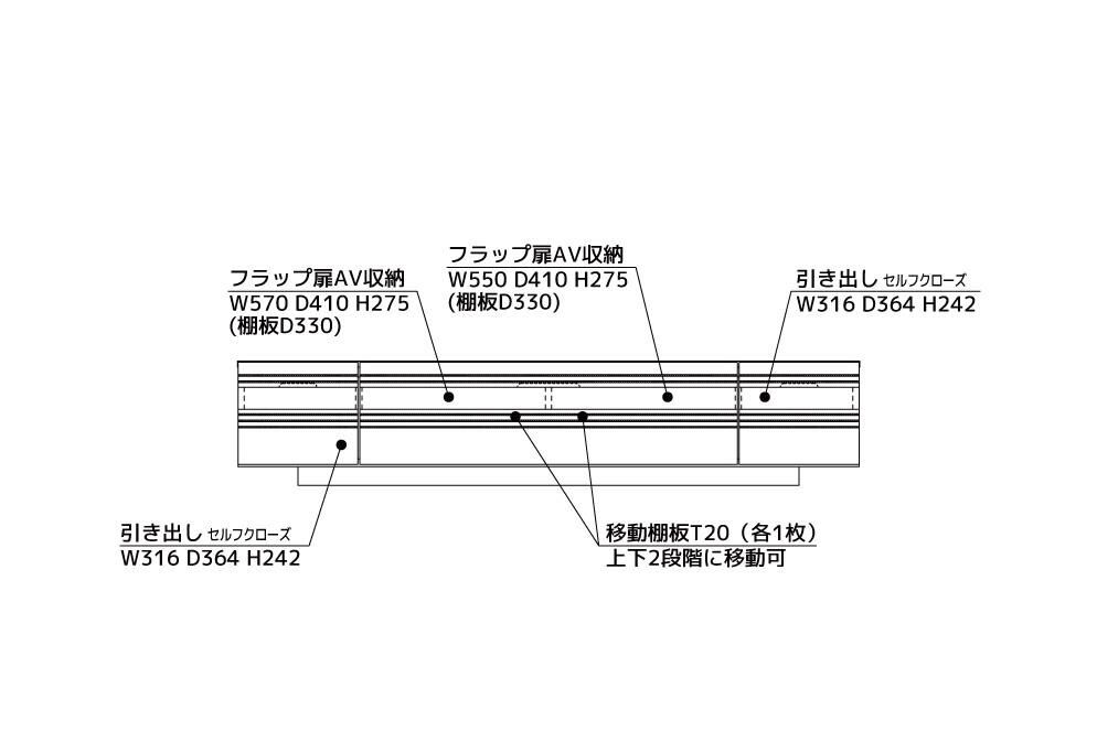 ブルーレイやDVDなど、一般的なAV機器が収納できるスペースが4ヶ所あります。棚板は上下に移動でき、取り外すこともできるため、高さのある機器にも対応可能です。