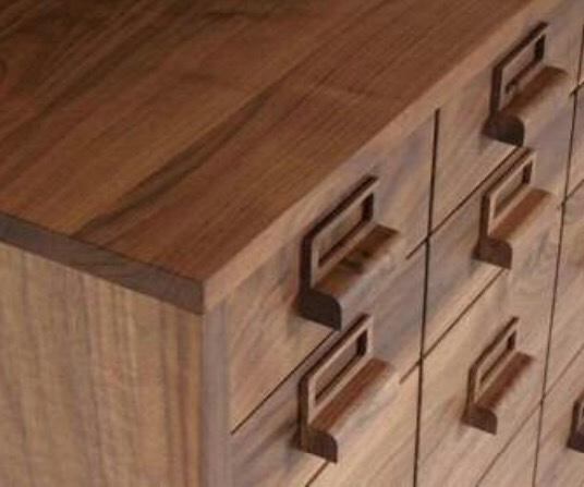 ラベルを入れることができる、オリジナルの無垢の取っ手。