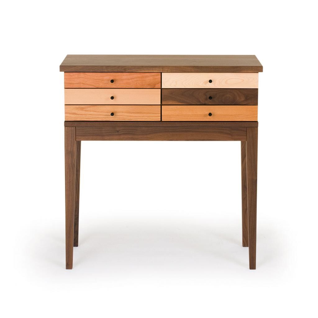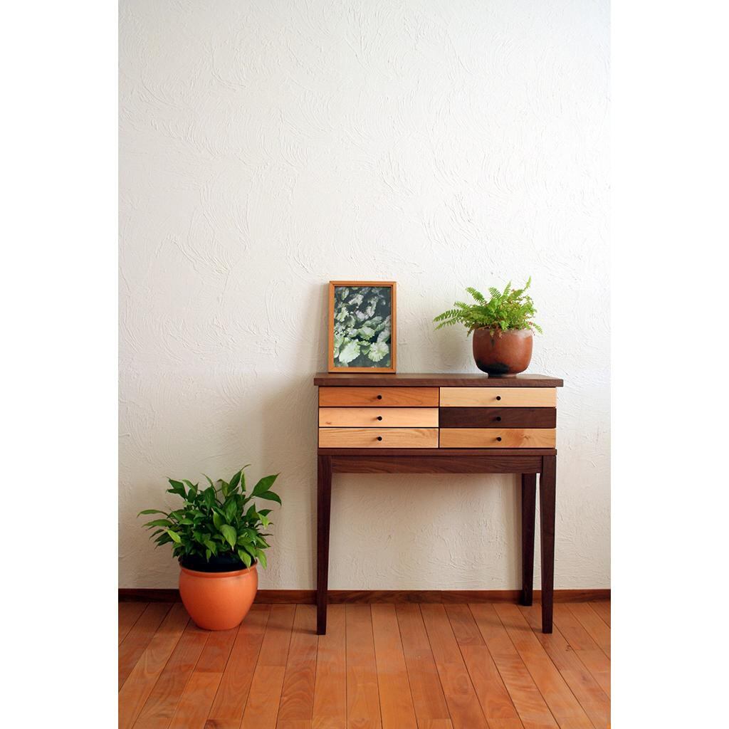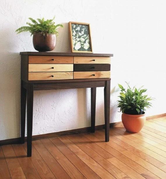 6素材の前板の組み合わせが軽快なアクセントを醸し出す人気のコンソールテーブルです。