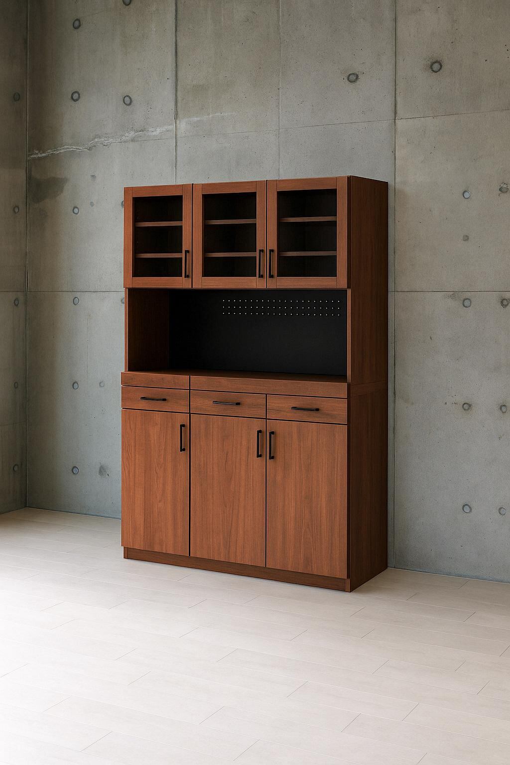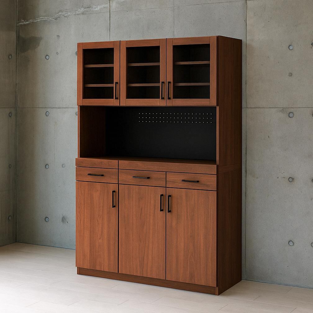 120 キッチンボード カップボード 食器棚 ウォールナット ブラウン 茶 おしゃれ 北欧 幅120 木製 天然木