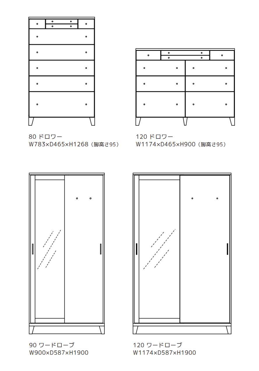 120 ワードローブ オーク (受注生産品)