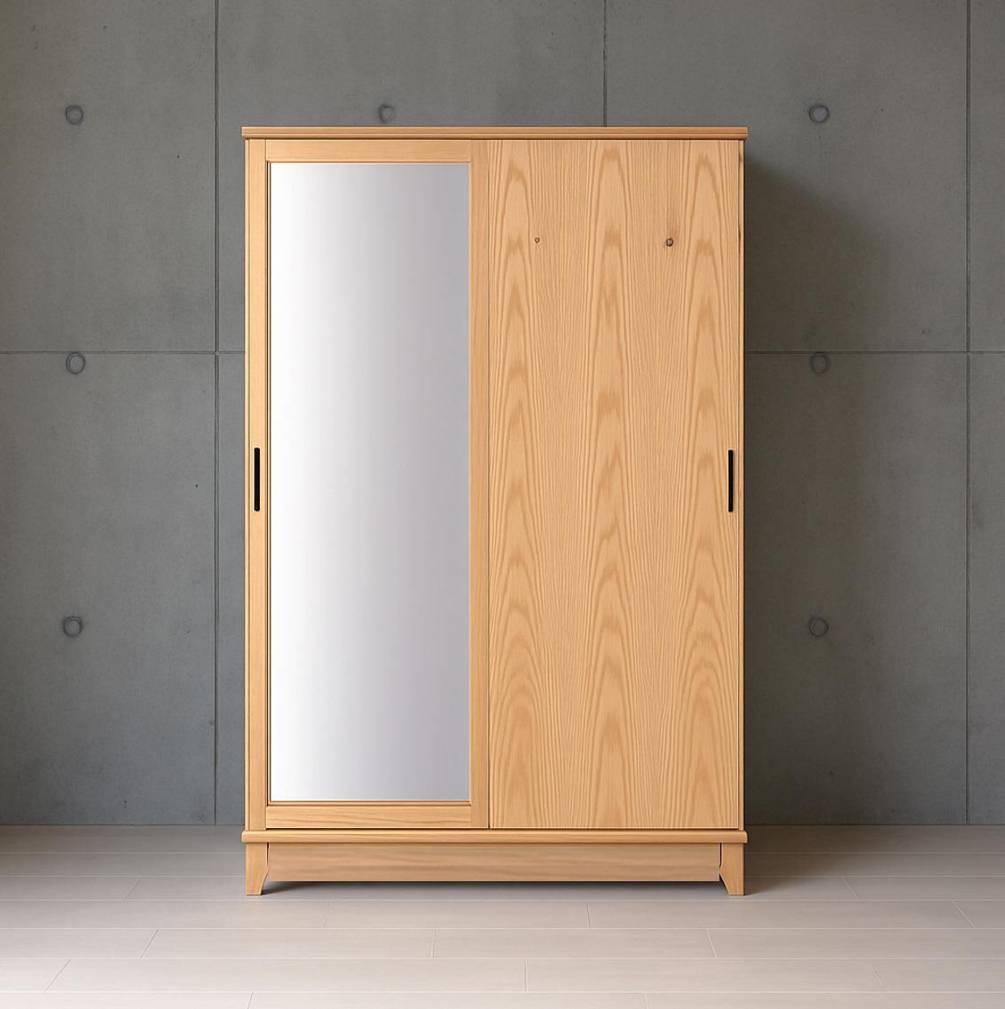 内部には ハンガーバー3本 と 棚板2枚 を付属し、ジャケット・ワンピース・バッグや小物まで、用途に合わせてすっきり収納。生活動線を邪魔しないスライド扉仕様で、限られたスペースでも快適にお使いいただけます。