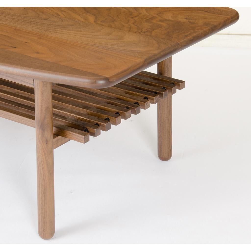 繊細な丸みを施した天板のかたちや角材を並べた棚板など、さり気ないこだわりが詰まったデザインです。