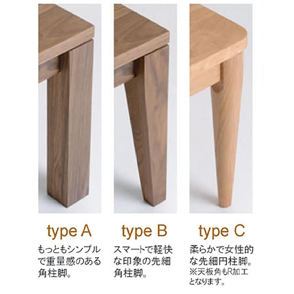 脚の形状は、写真のType A〜Cの3タイプからお選びいただけます。