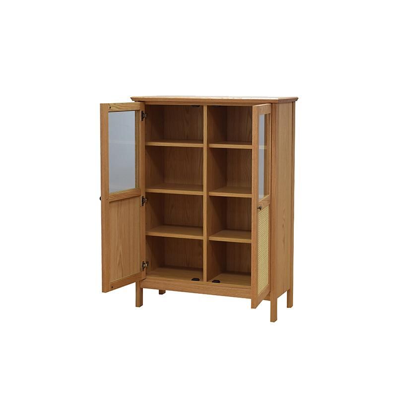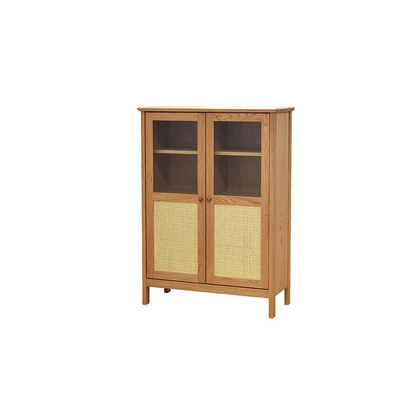 サイドボード キャビネット リビングボード カップボード 幅90 オーク 天然木 ナチュラル 無垢材 ラタン レトロ 和モダン ミッドセンチュリー