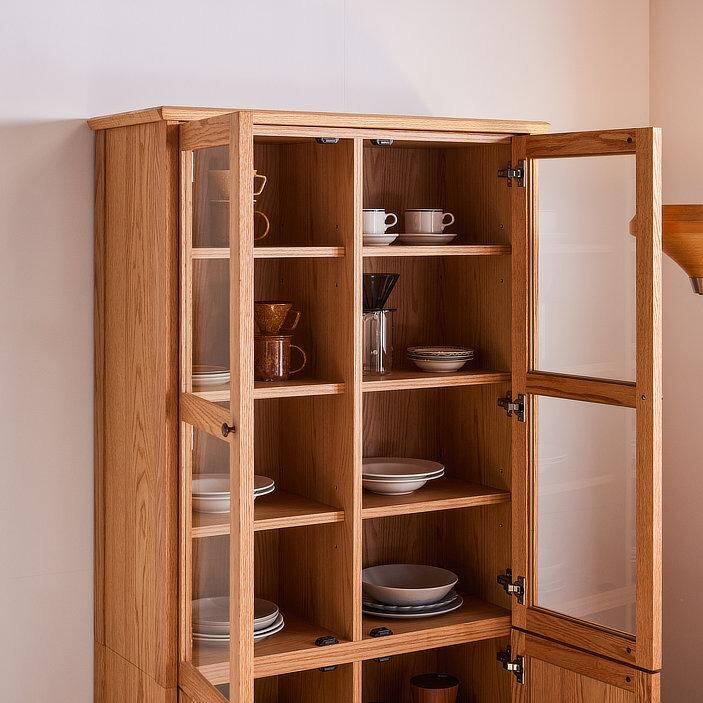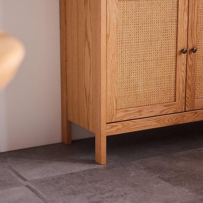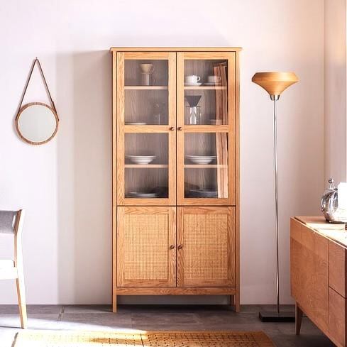 サイドボード キャビネット 食器棚 書棚 本棚 カップボード 幅90 オーク ナチュラル 無垢 ラタン 籐家具 和モダン レトロ ミッドセンチュリー