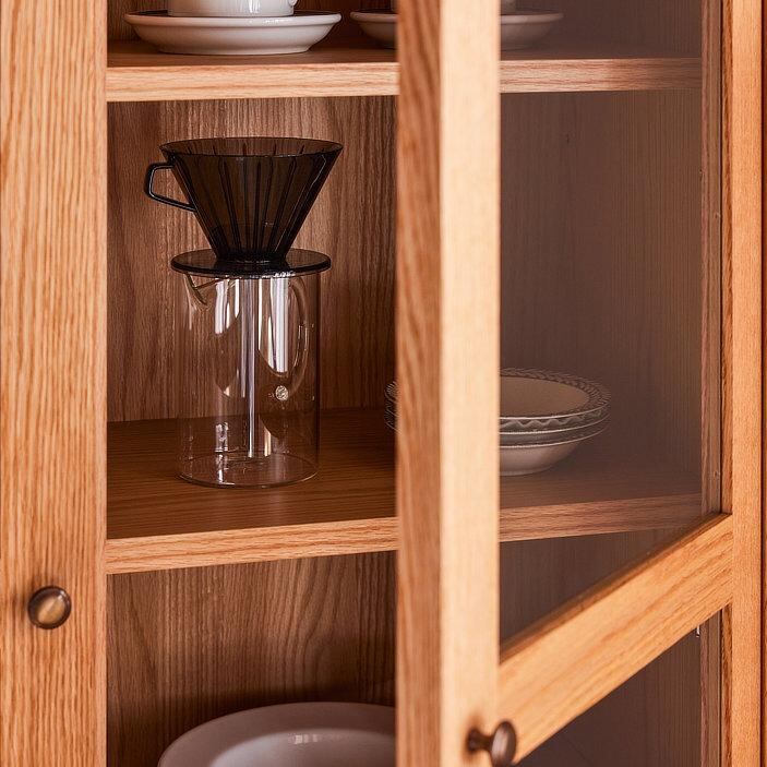 シリーズのガラスキャビネット、サイドボードを合わせてコーディネートすれば、統一感のある上質なリビングダイニングを演出できます。