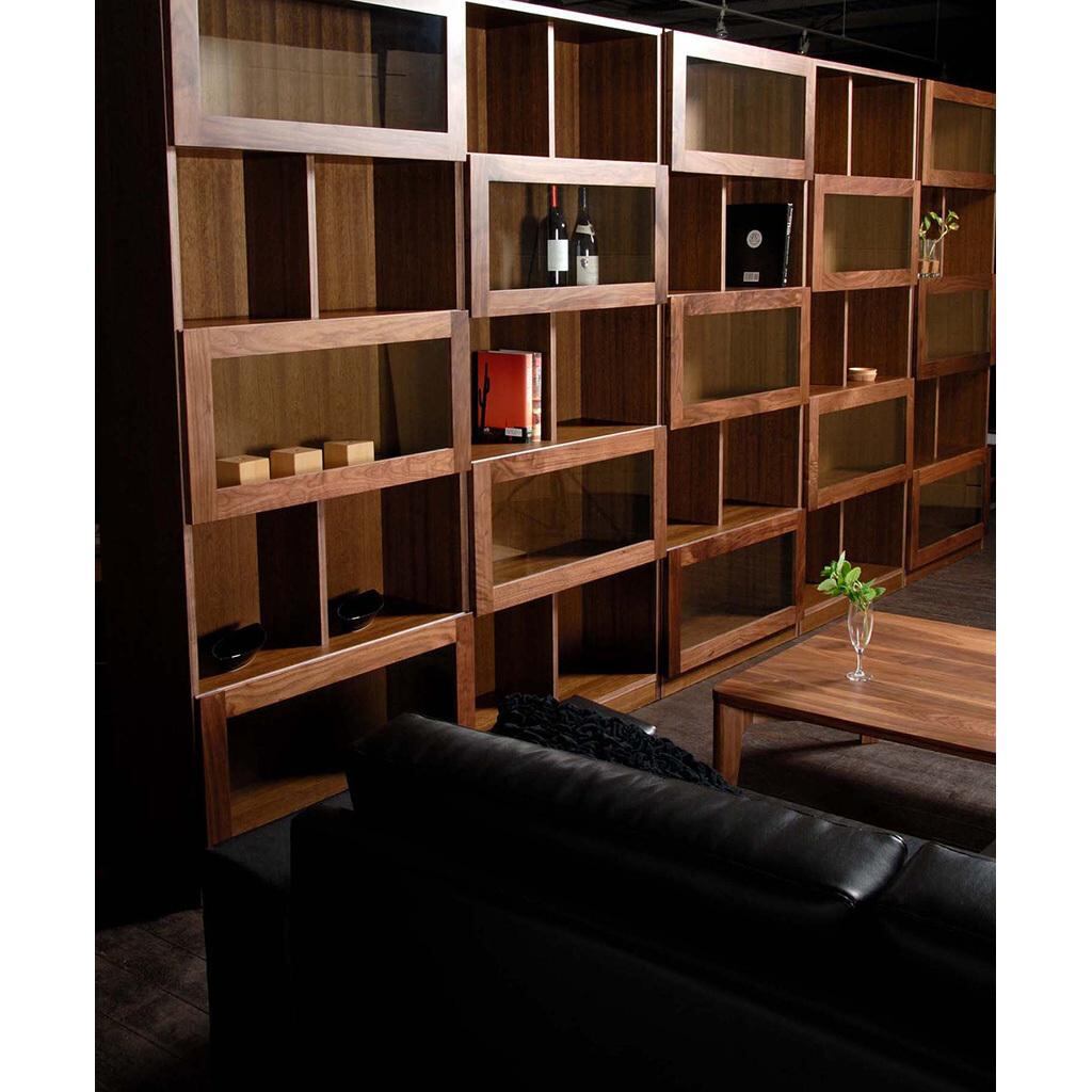 キャビネット3ドア 書棚 本棚 飾り棚 無垢 天然木 幅80 ウォールナット キュリオケース 完成品 ガラス扉 デザインシェルフ 書斎