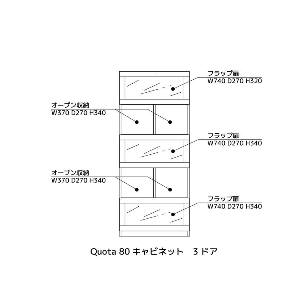 80フリーキャビネット3ドア ウォールナット