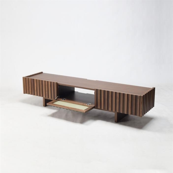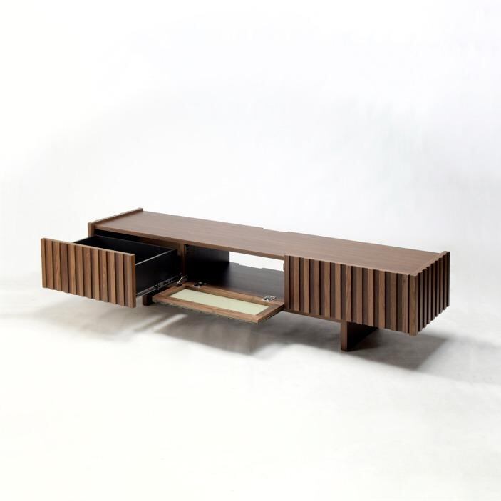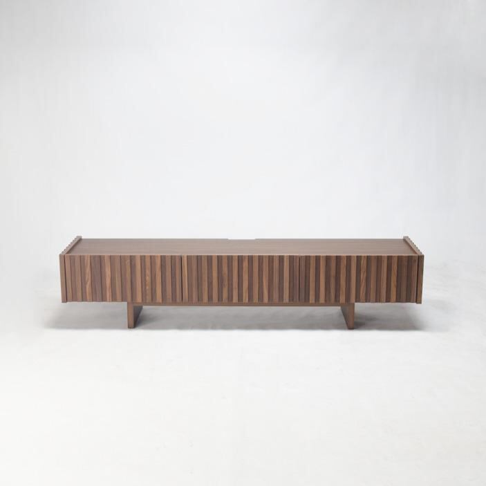 無垢材を贅沢に使用した桟(スリット)デザインが美しいローボード。