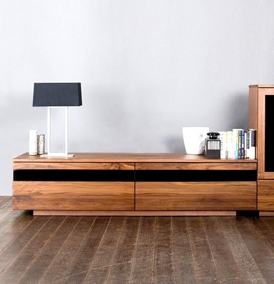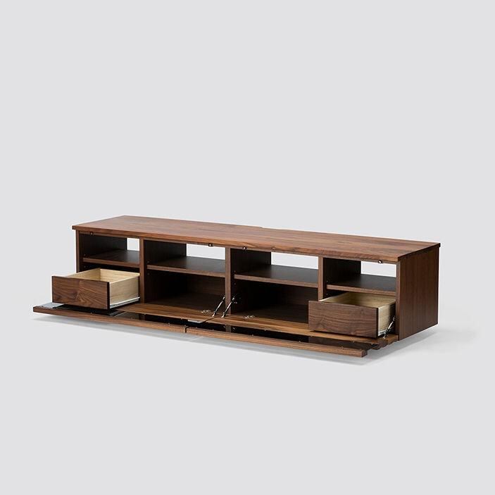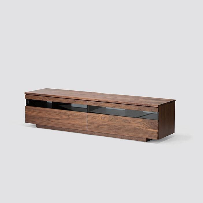 高さを抑えたローボードデザインは、お部屋を広く見せ、ウォールナット・オークの素材感がインテリアに高級感を添えます。