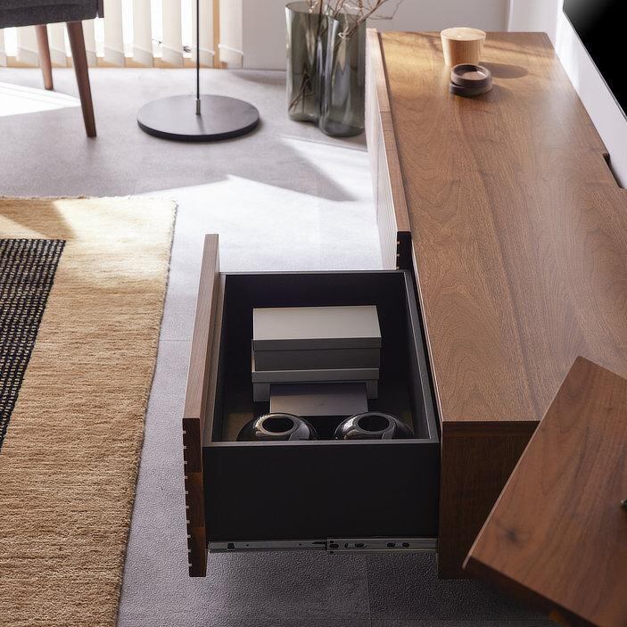 重厚な無垢材を贅沢に使用した、素材の存在感が際立つテレビボードです。