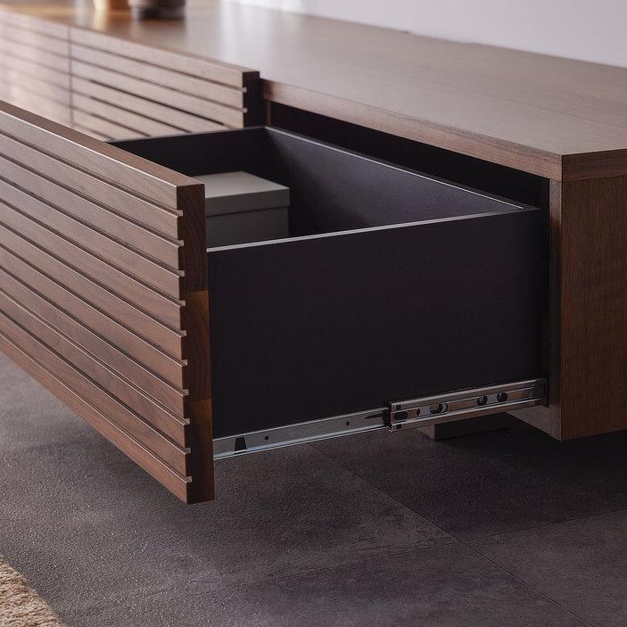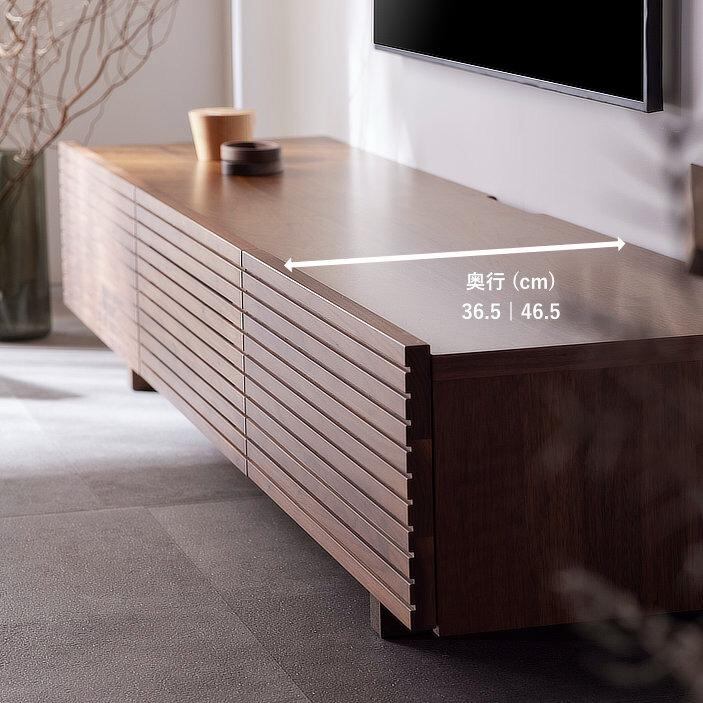重厚な無垢材を贅沢に使用した、素材の存在感が際立つテレビボードです。