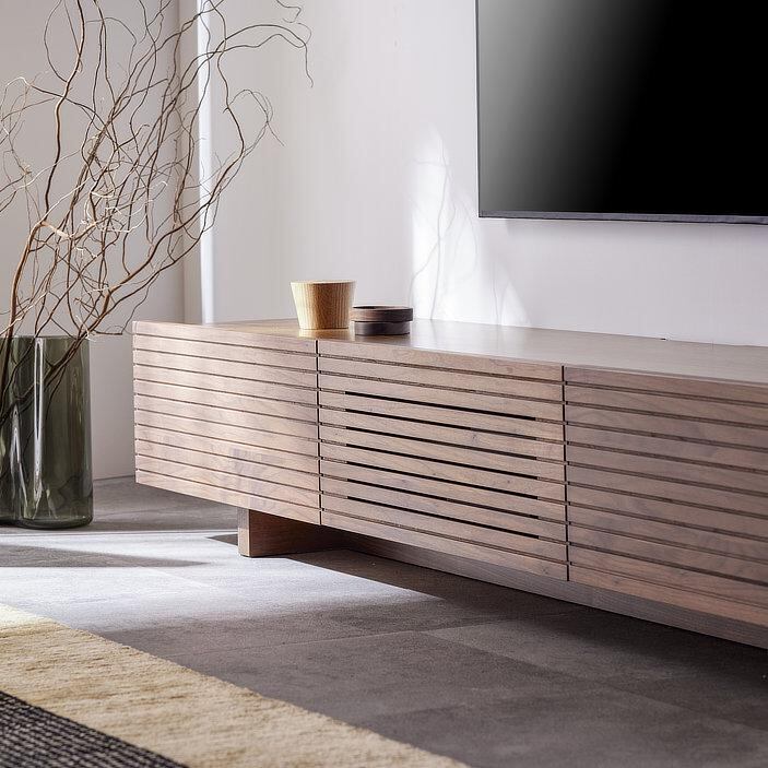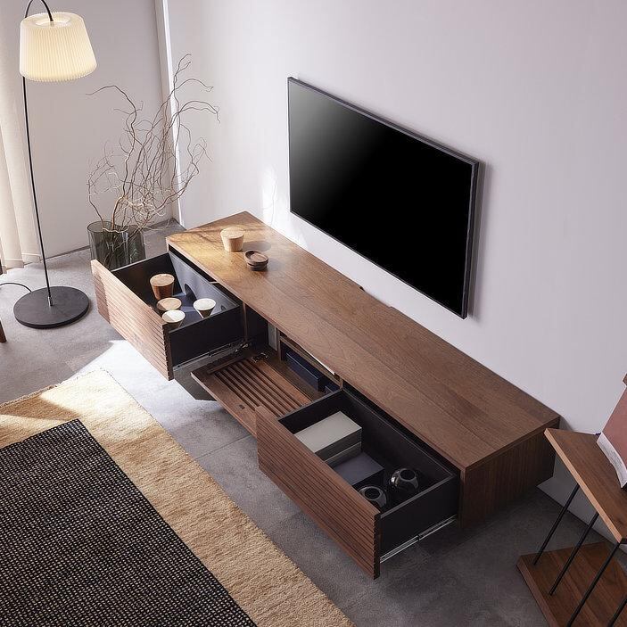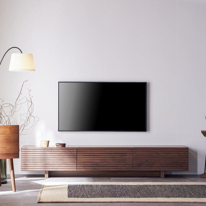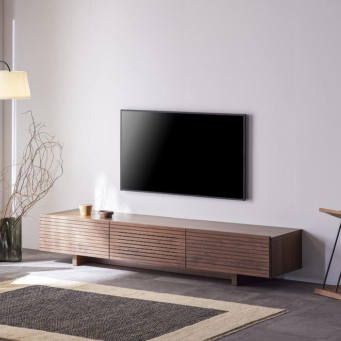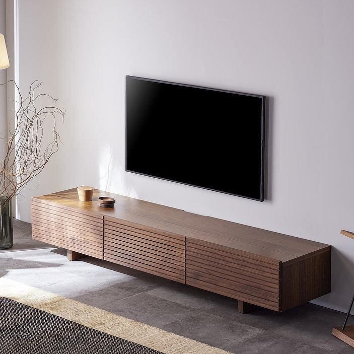 重厚な無垢材を贅沢に使用した、素材の存在感が際立つテレビボードです。