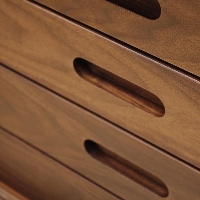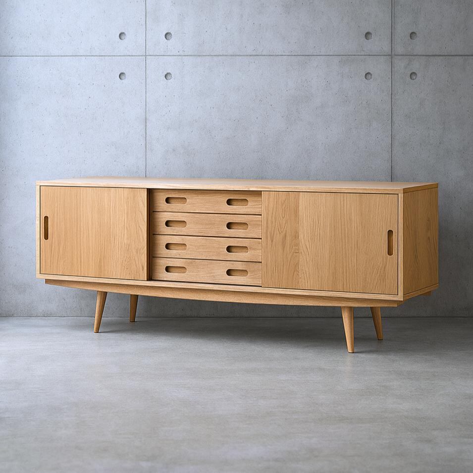 無垢材ならではの上質な木目が引き立つデザインで、北欧家具・ナチュラル・ミッドセンチュリーなど、さまざまなインテリアに調和します。