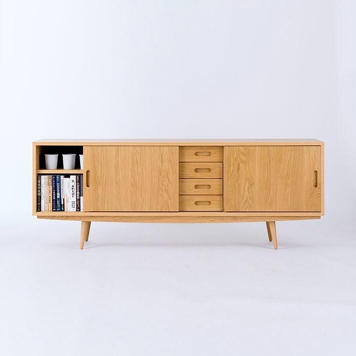 キャビネット 北欧 おしゃれ 幅170 サイドボード ウォールナット オーク 無垢 天然木 ナチュラル シンプル 脚付き 開き戸 扉 収納 大容量 棚 書斎 リビング