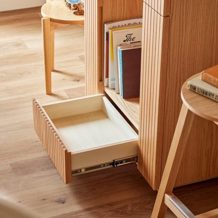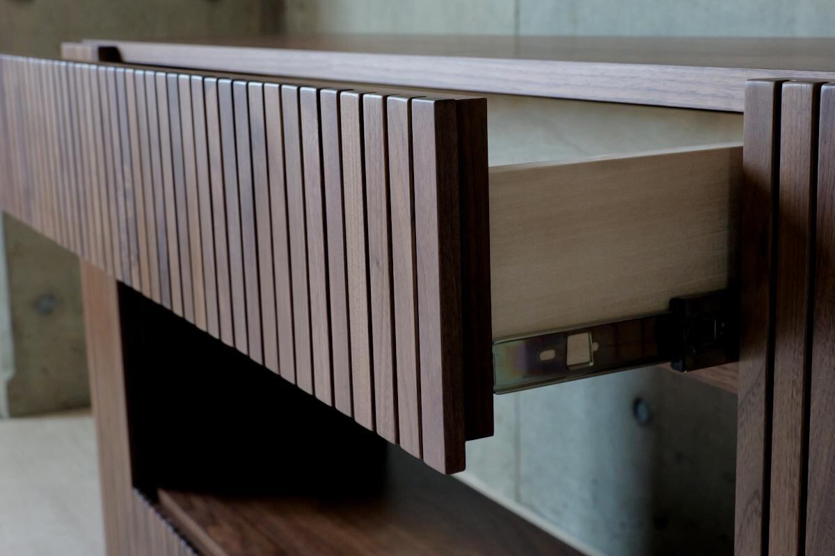 スタイリッシュな縦格子デザインが目を惹く、北欧モダンテイストのサイドボード。