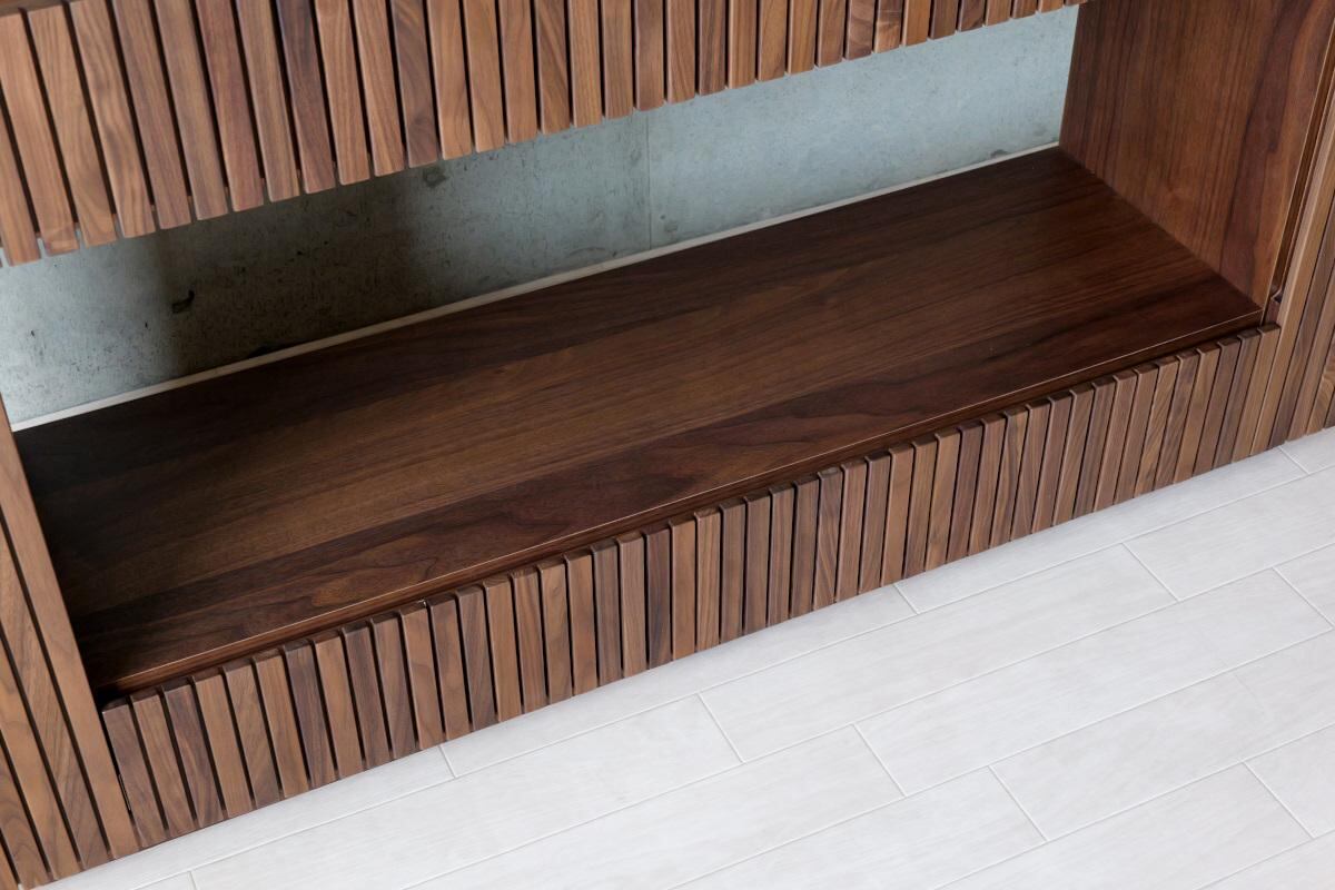 一本一本の縦格子から天然木の豊かな表情が浮かび上がる上質な仕上がり。