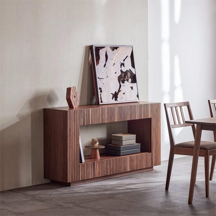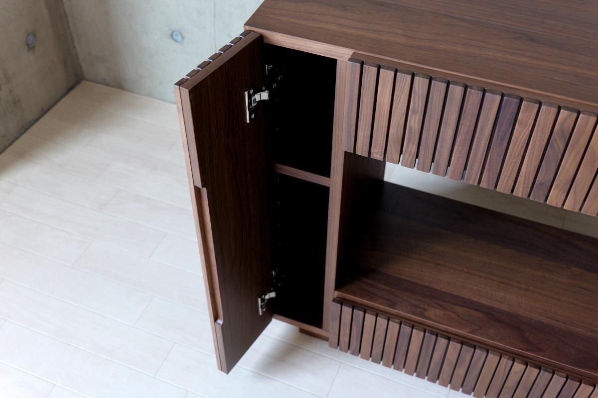 サイドボード 幅140 北欧 おしゃれ 無垢材 ウォールナット キャビネット 収納 棚 格子 引き出し オープンラック リビングボード 玄関 リビング 収納家具 高級感