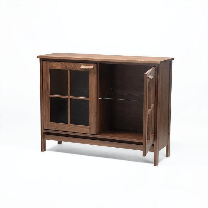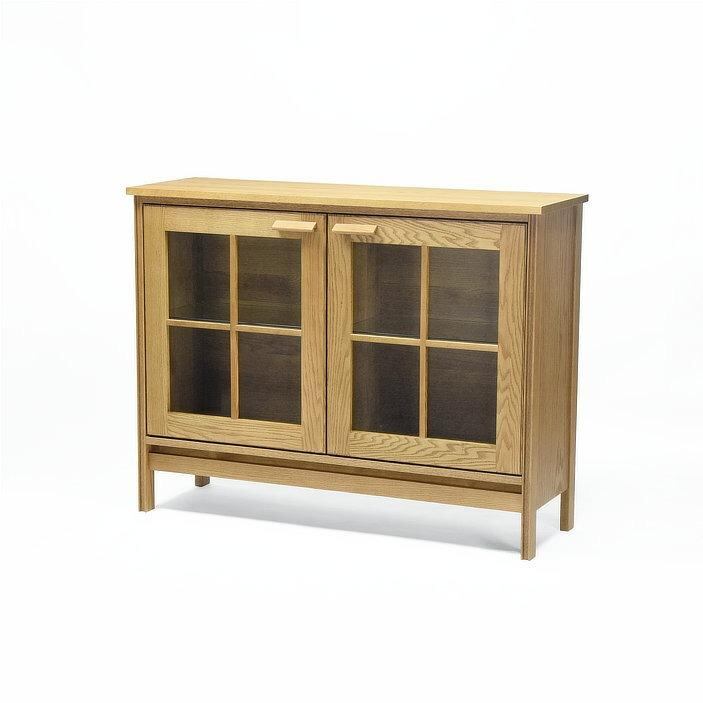 キャビネット ウォールナット 無垢 オーク 120cm 幅120 ガラス扉 無垢材 サイドボード 収納棚 リビング収納 低め 食器棚 北欧風 ホテルライク