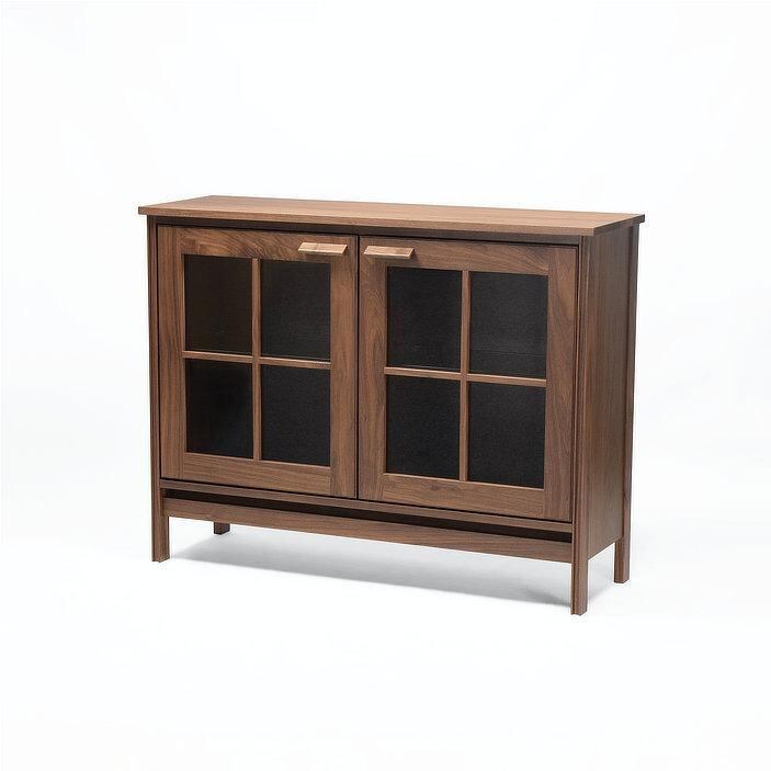 外装には突板、内装にはプリント合板を組み合わせ、無垢材の風合いと扱いやすさを両立。美しさと実用性を備えた、永く使えるキャビネットです。