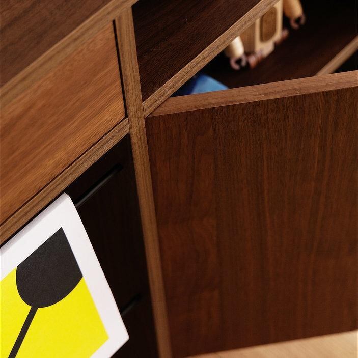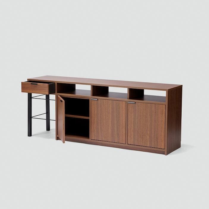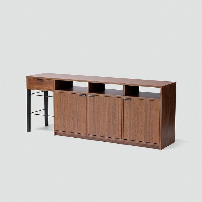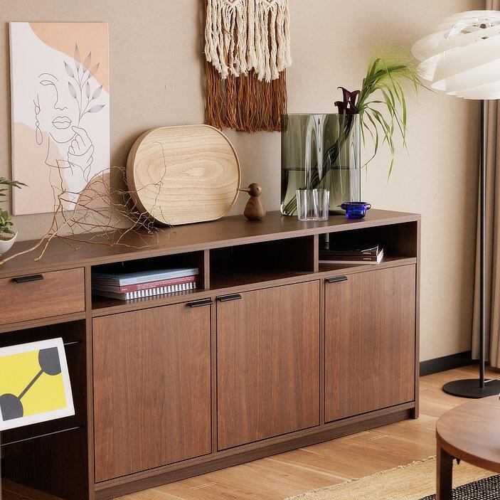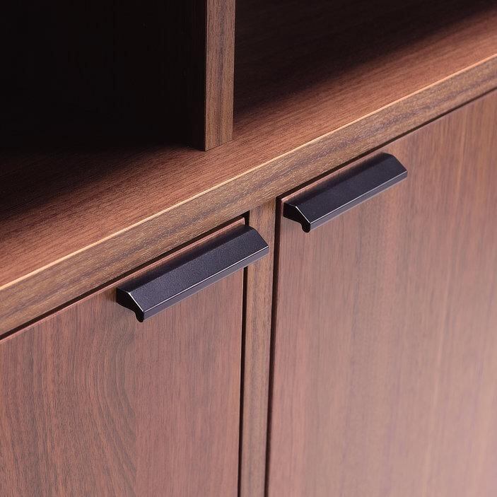 シンプルな直線構成と、木×ブラック脚のコントラストが美しいユニットタイプのサイドボード。