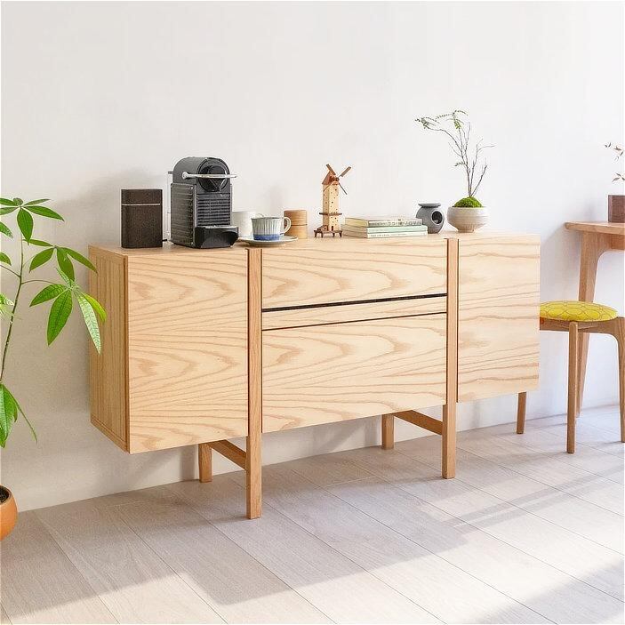 シンプルな直線フォルムと、木の美しさを活かしたデザインが魅力のサイドボード。