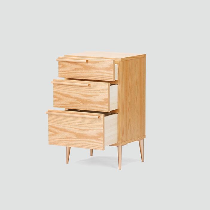 引き出しは3段構造で、衣類や小物、書類までしっかり収納。
