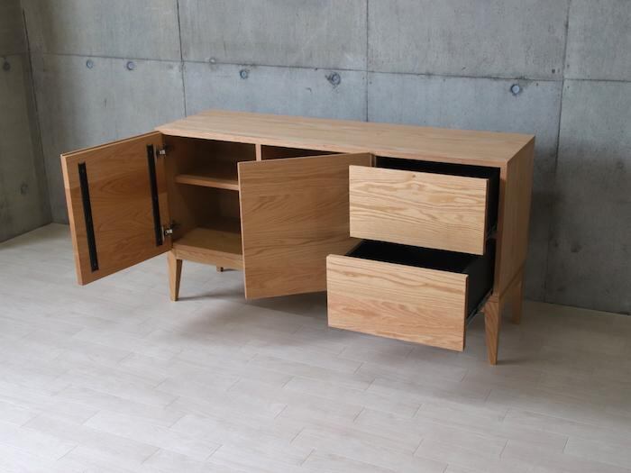 前板・脚には無垢材を、天板・側板には突板を使用。
