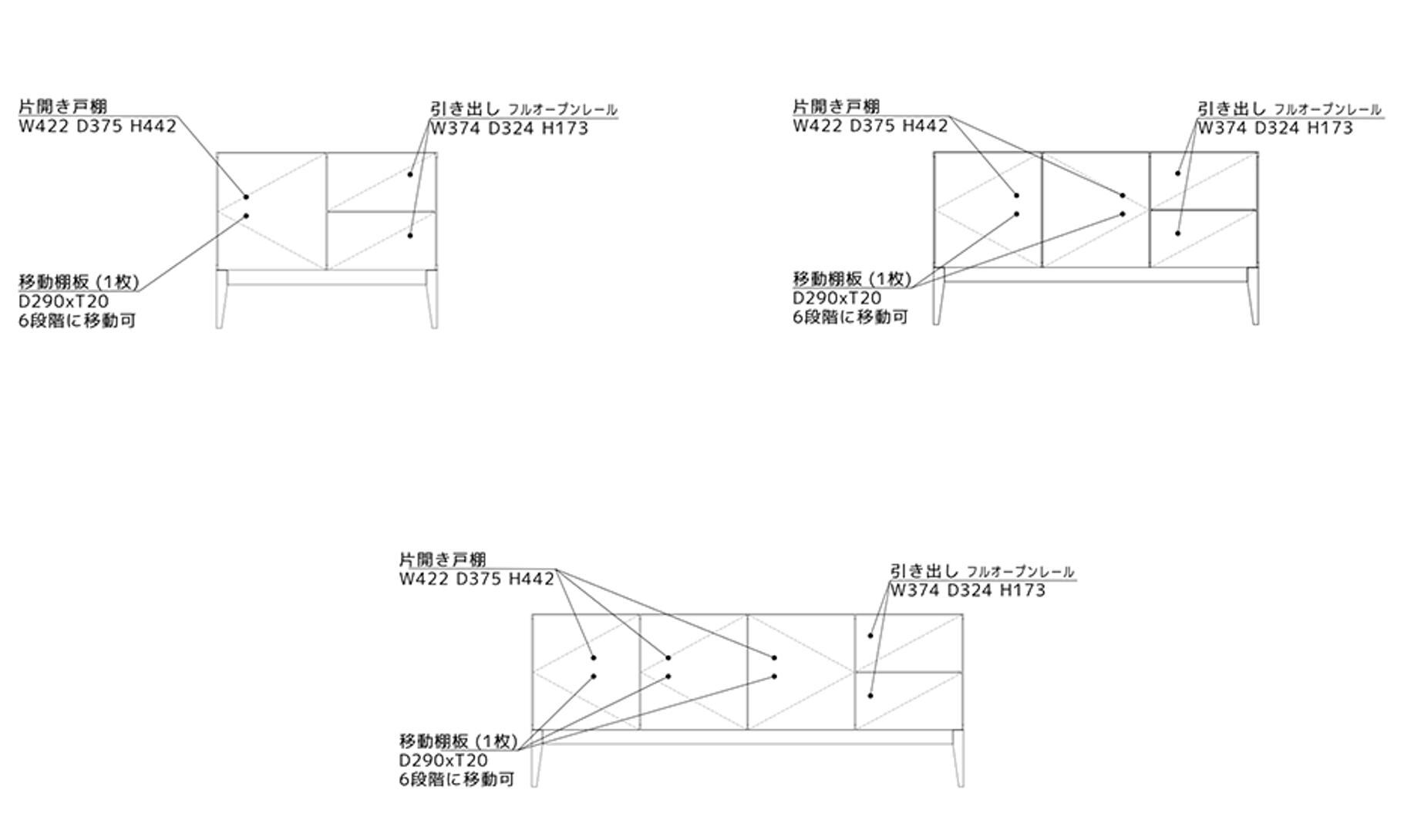 高すぎない高さ70cm程(72cm)のキャビネットなので、ダイニングルームや寝室等でハイタイプのテレビ台としてもご活用いただけます。