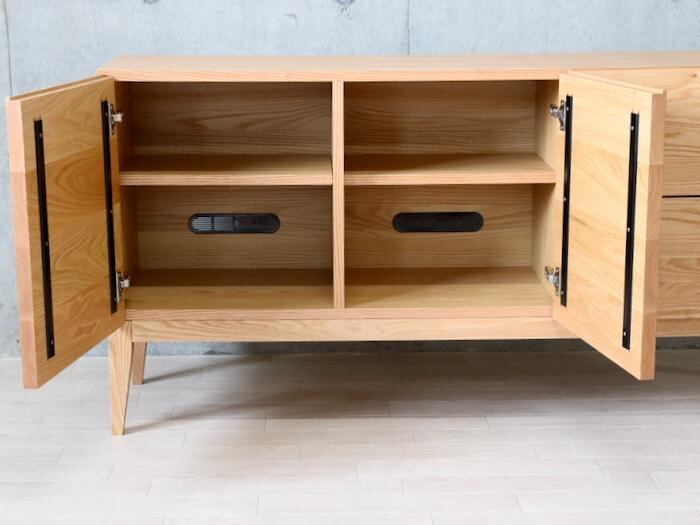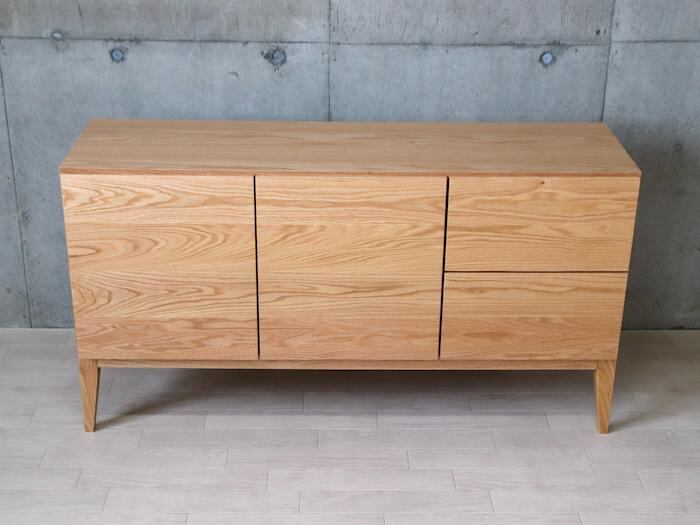 リビングボード 幅135 サイドボード キャビネット オーク ナチュラル ナラ材 無垢材 天然木 北欧 おしゃれ テレビボード ハイタイプ 幅130 〜 幅140 脚付き