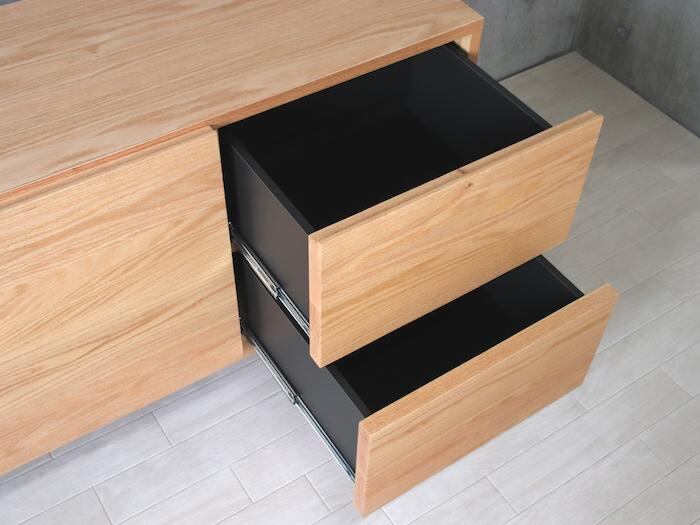 引き出しは奥のものもスムーズに出し入れできるフルスライドレール。
