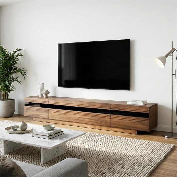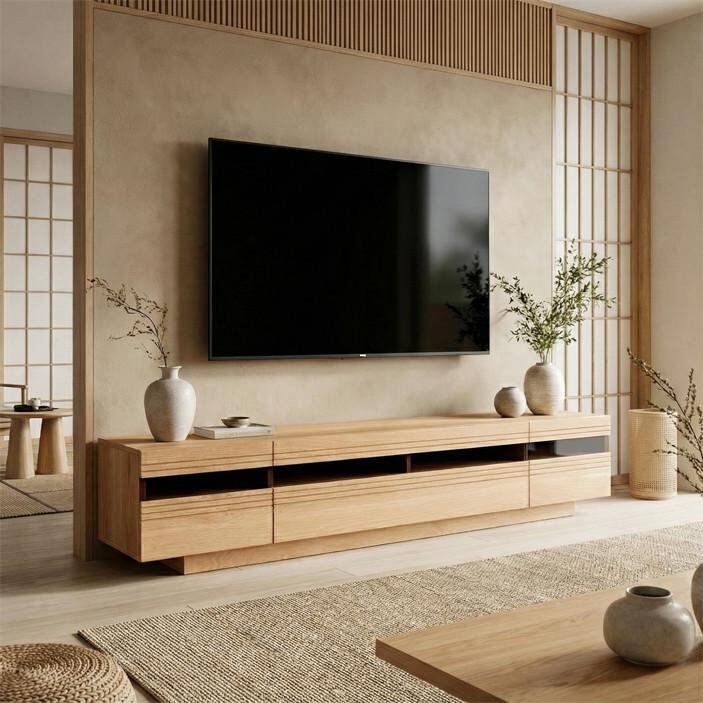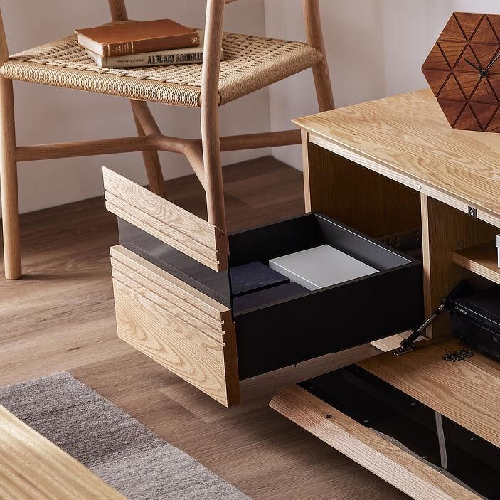 スタンダードなスタイルと安定感のあるプロポーションを備えた、普遍的なデザインのテレビボード。