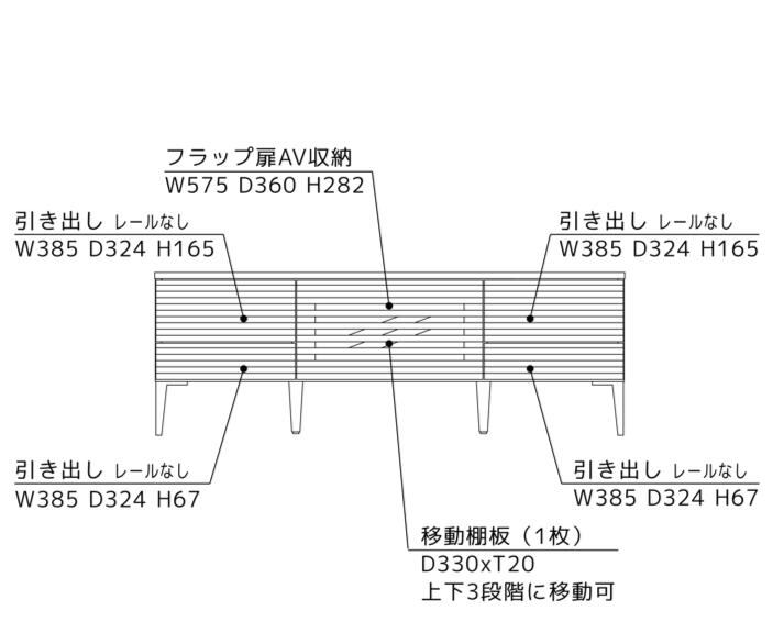 内部は可動棚や引き出しを備え、AV機器・小物収納・コード類の整理にも適した設計です。